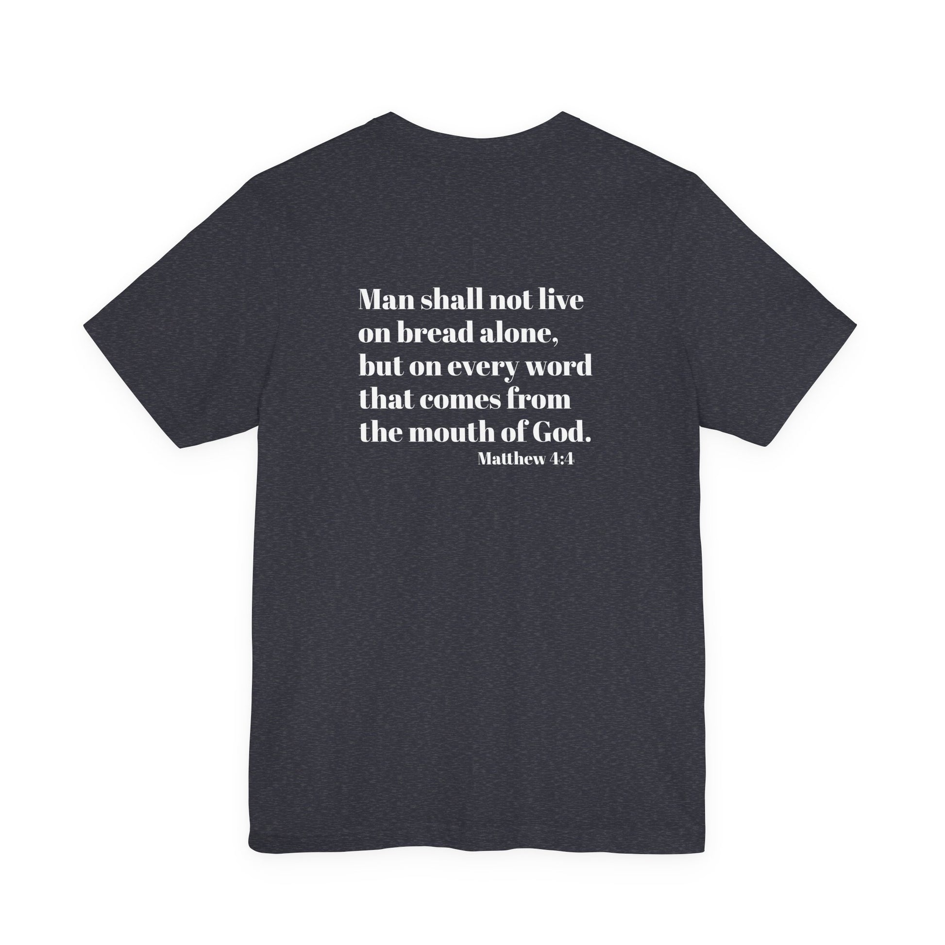 Matthew 4:4 Christian t-shirt inspired by God’s Word. Faith-based apparel by Daily Bread Threadz designed for comfort and everyday wear.