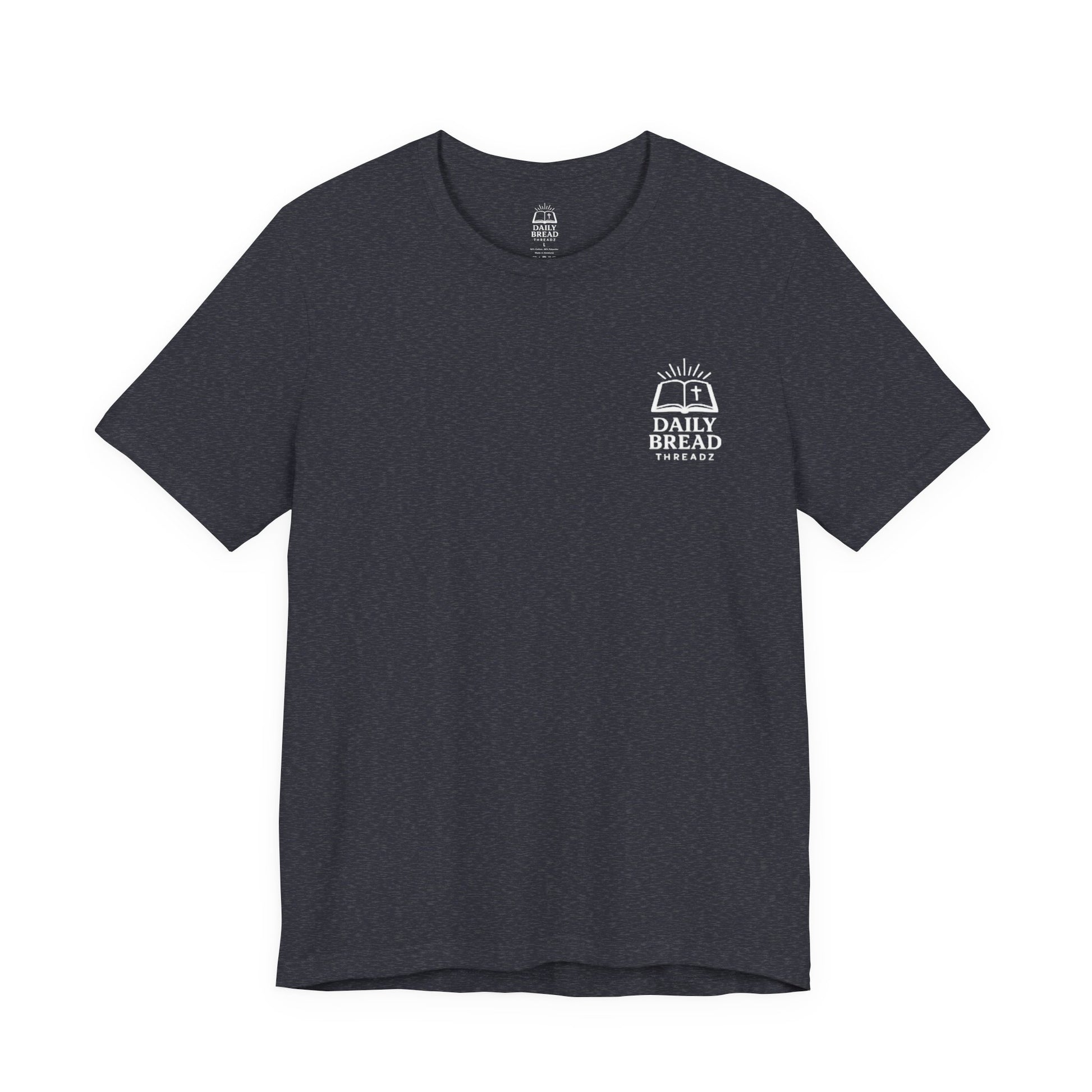 The Matthew 4:4 Daily Bread Faith Tee reflects the heart of the Gospel and the mission behind Daily Bread Threadz. This scripture-based shirt points to the truth that real life, strength, and nourishment come from God’s Word—not from this world.